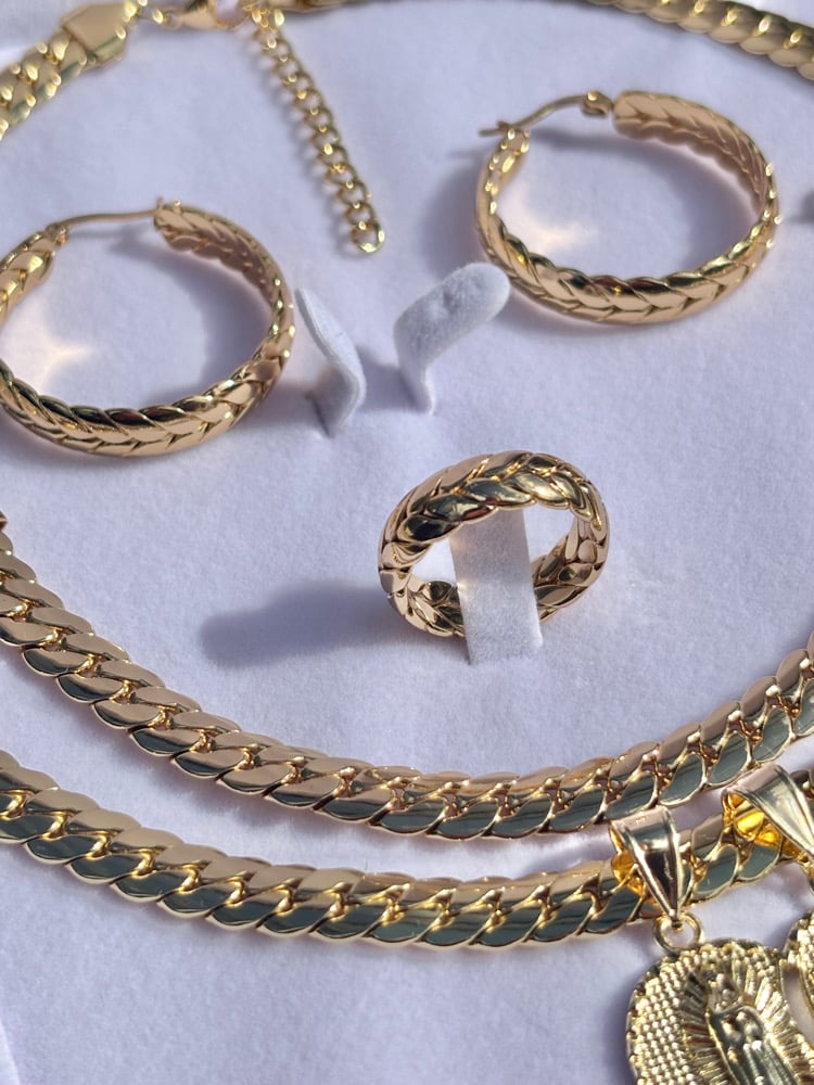 Fall in love with luxury that lasts — this complete 5-piece Cuban link jewelry set includes everything you need for a bold yet feminine statement. Each piece is crafted from durable 316 stainless steel with a rich 14K gold plating for long-lasting shine and everyday wearability.