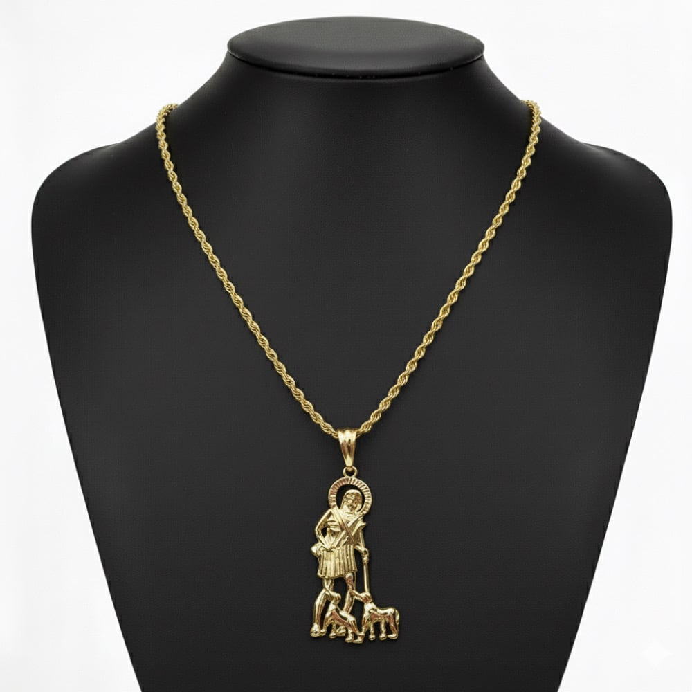 Gold Plated 3mm Rope Chain With St. Lazarus Pendant