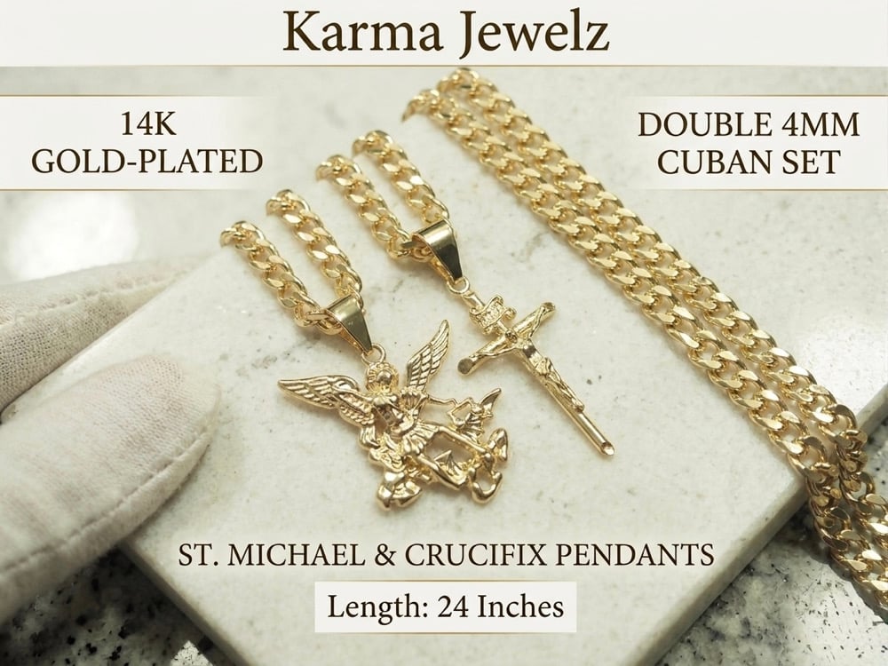 4mm Cuban Link Double Chain Set 24” | 14K Gold Plated Necklace Set | Layered Cuban Chain Set
