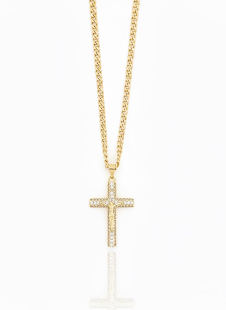 Make a bold statement with our 5mm Cuban Chain featuring a fully iced out Cross Pendant designed to shine from every angle. This piece blends everyday simplicity with elevated style, creating a timeless accessory that stands out effortlessly.