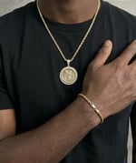 This set gives you that luxury, bold look seen in high-end jewelry without the heavy price tag. The iced coin pendant adds a unique touch that stands out in any setting.