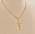 14k Gold Plated Rope Chain with Large Cross Pendant