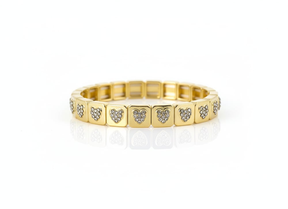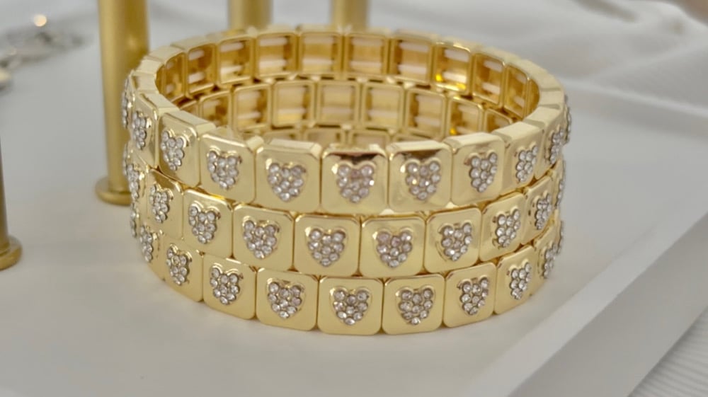 Add a touch of love and shine to your style with these brand new stretchy heart bracelets. Crafted with a durable gold-plated finish, they’re designed to sparkle beautifully while remaining comfortable enough for everyday wear. The flexible stretch fit makes them easy to slip on and perfect for stacking with other favorites.